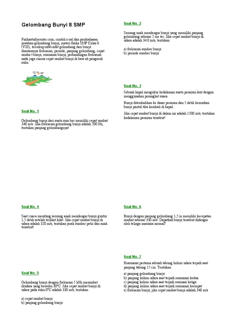 Doc Fisika Cepat Rambat Bunyi Rakhiv Rona Academia Edu from 0.academia-photos.com V = cepat rambat bunyi (m/s) b = modulus bulk (n/m2) ρ = massa jenis zat (kg/m3) kecepatan bunyi pada beberapa medium pada suhu yang sama (20 °c) ditunjukkan pada tabel di bawah ini. Welcome to bimbel pak billcen :dkali ini kita akan membahas materi mengenai kecepatan rambat bunyi pada berbagai medium perambatan :dfollow my instagram: Rumus kecepatan bunyi di udara. Contoh soal kecepatan suara / cepat rambat gelombang bunyi tentukan frekuensi dan periode gelombang bunyi jika panjang gelombang 10 meter dan cepat rambat bunyi 350 m/s! Cepat rambat bunyi, kelajuan bunyi, pembahasan soal kecepatan bunyi, kecepatan bunyi di zat padat, cair, dan gas. Sebuah kereta api bergerak melewati suatu stasiun kecil dengan kecepatan 20 m/s sambil membunyikan sirene dengan frekuensi 2000 hz. Contohnya cepat rambat bunyi di udara pada suhu normal sebesar 343 ms2 namun cepat rambat bunyi di udara pada suhu 0 derajat celcius hanya sebesar 331 ms2. Bunyi yang merambat melalui medium perpindahan tenaga inilah yang menimbulkan kemunculan dari suara halilintar tersebut.