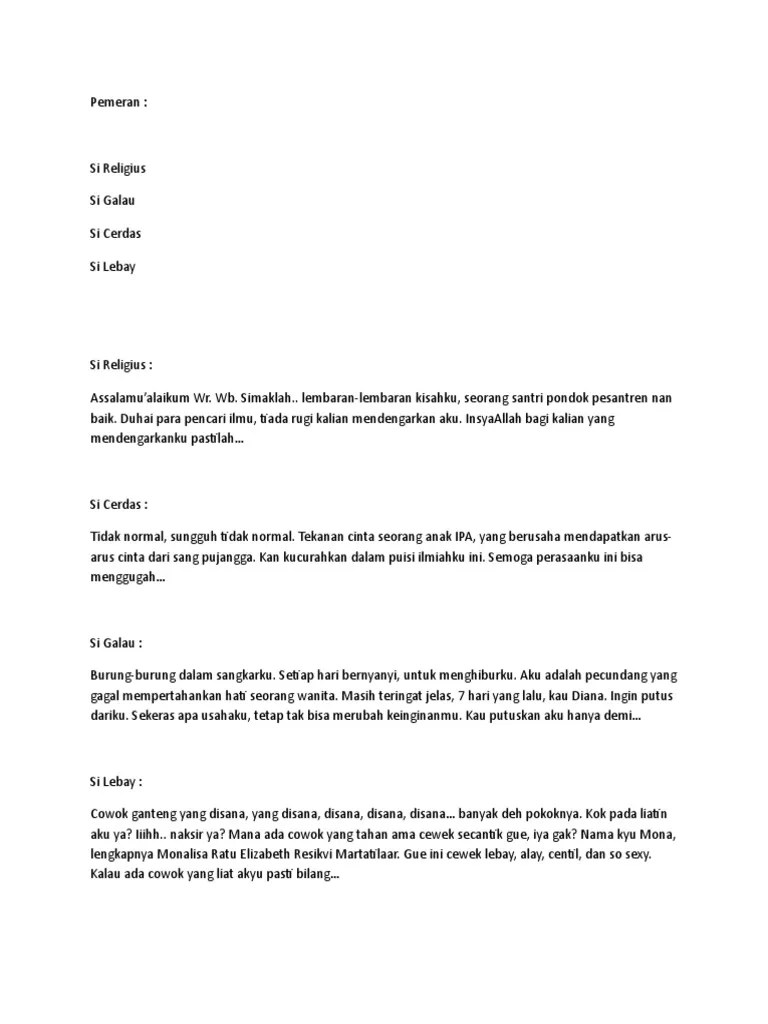 25 puisi anak sekolah pendek tema alam guru ibu dan lainnya baru. puisi berantainya antara pejuang kemerdekaan, ketua bem, cewek romantis, cewek arogan dan juga penjual jamu gendong. puisi berantai islami lucu santri menulis puisi berantai santri lucu bahasa sunda, 02 09 2019 dokumentasi lepas pisah smk maarif bangsalsari jember 2019 please subscribe like shared. puisi berantai orang gila, tukang becak, penjual oncom. Ia , rasulullah shalallahu 'alaihi wasallam !