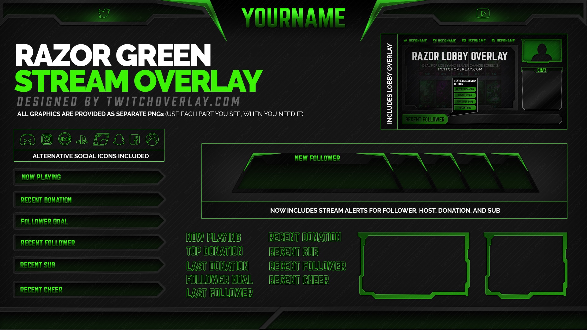 Twitch overlays, donation alerts, stream widgets.